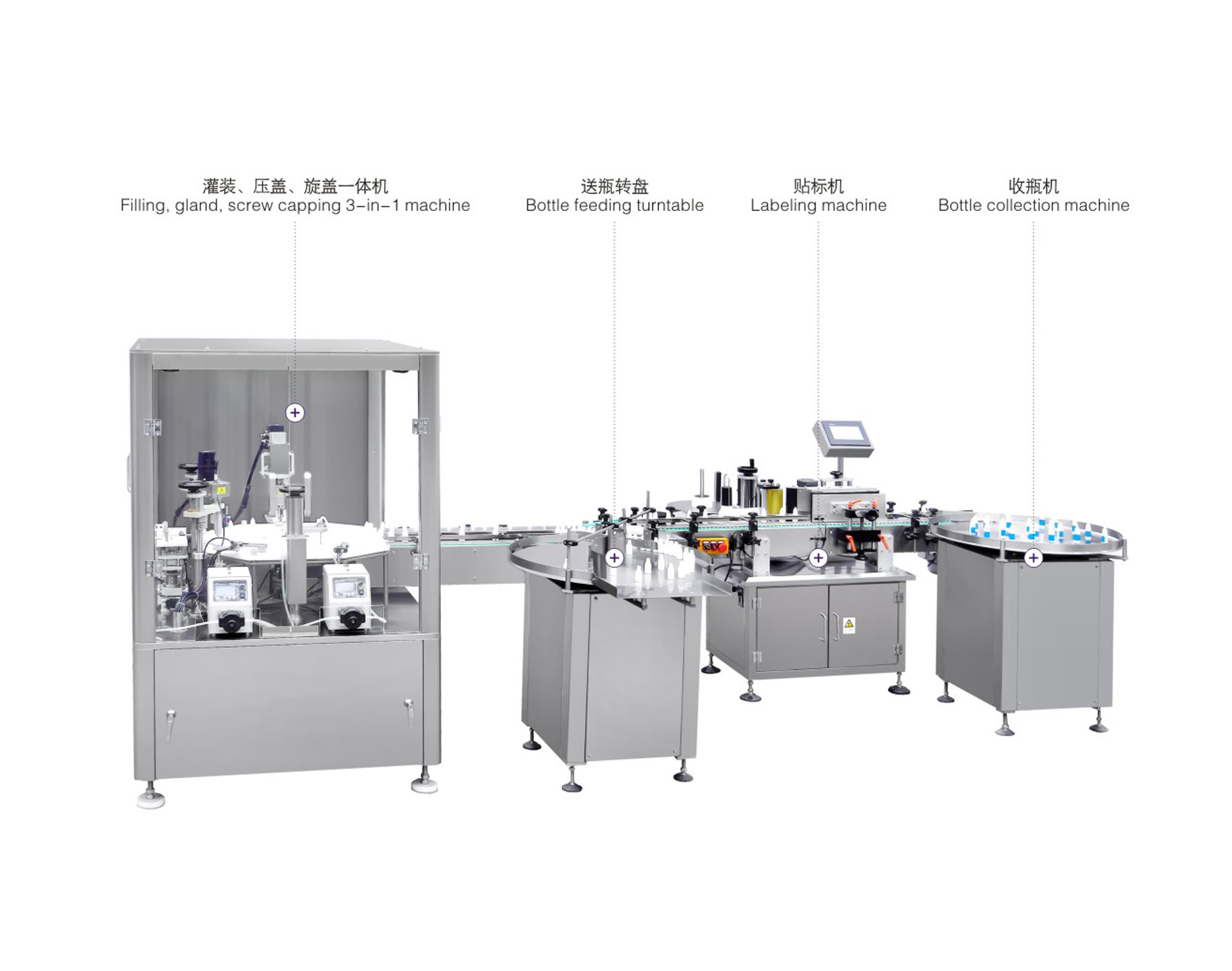 转盘多头秤灌装(带卡盘式震动灌装)封罐旋盖贴标喷码线